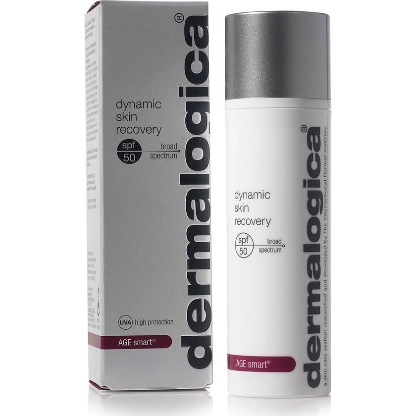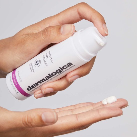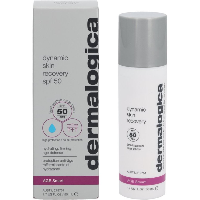 Dermalogica Age Smart Dynamic Skin Recovery SPF50 This moisturizer provides intensive hydration and arms the skin against internal and external influences that play a role in skin aging. The product contains broad-spectrum sun protection SPF50 for optimal protection against skin-aging UV rays A patented peptide Soy and Glucosamine stimulate collagen production and improve the skin’s resistance Use Apply a generous amount over the face and neck after cleansing, preferably 30 minutes before sun exposure p>