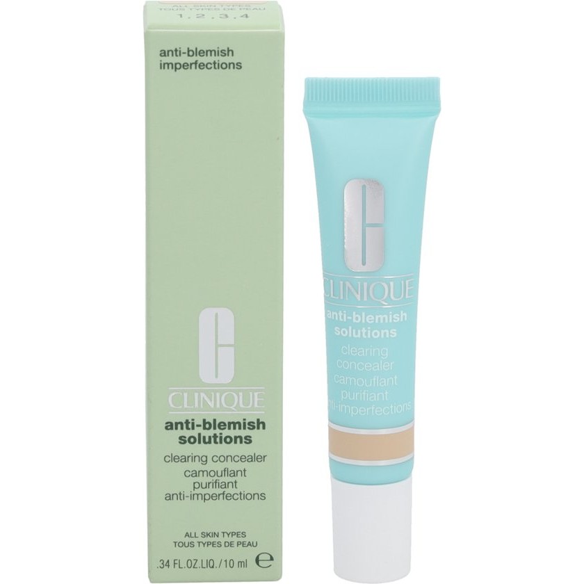 Clinique Anti Blemish Solutions Clearing Concealer This healing concealer helps to purify and prevent pimples The soft and soothing formula provides natural coverage while allowing the pimples to heal The concealer is fat-free 100 perfume-free tested for allergies and also suitable for all skin types Color Shade 01 Use Dab on the pimple spread the concealer outwards and avoid the eye contour