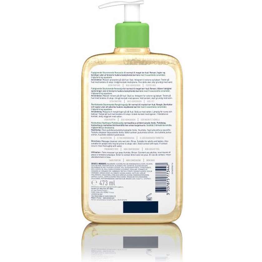 A mild cleansing oil for sensitive skin and skin prone to atopy The skin is hydrated and soothed without disrupting the skin barrier 3 essential ceramides 1 3 and 6 II restore the skin Squalane oil and triglycerides help care for the skin Amino acid-based ingredients with an optimal PH value gently remove excess sebum residue oil and make-up Due to its mildness, the oil is very suitable for dry skin and sensitive baby skin
