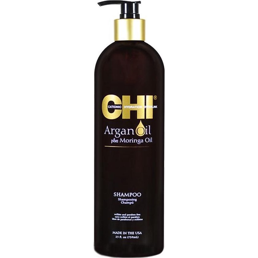 CHI Argan Oil Shampoo combines a unique mix of Argan and Moringa oil to gently cleanse the hair and repair and care for damaged or dull hair. The shampoo also ensures a recovery of the moisture content and strengthening of the hair The result A healthy and shiny hairstyle Instructions for use Apply to wet hair, massage and spread to the ends Then rinse For the best result, use the CHI Argan Oil Conditioner
