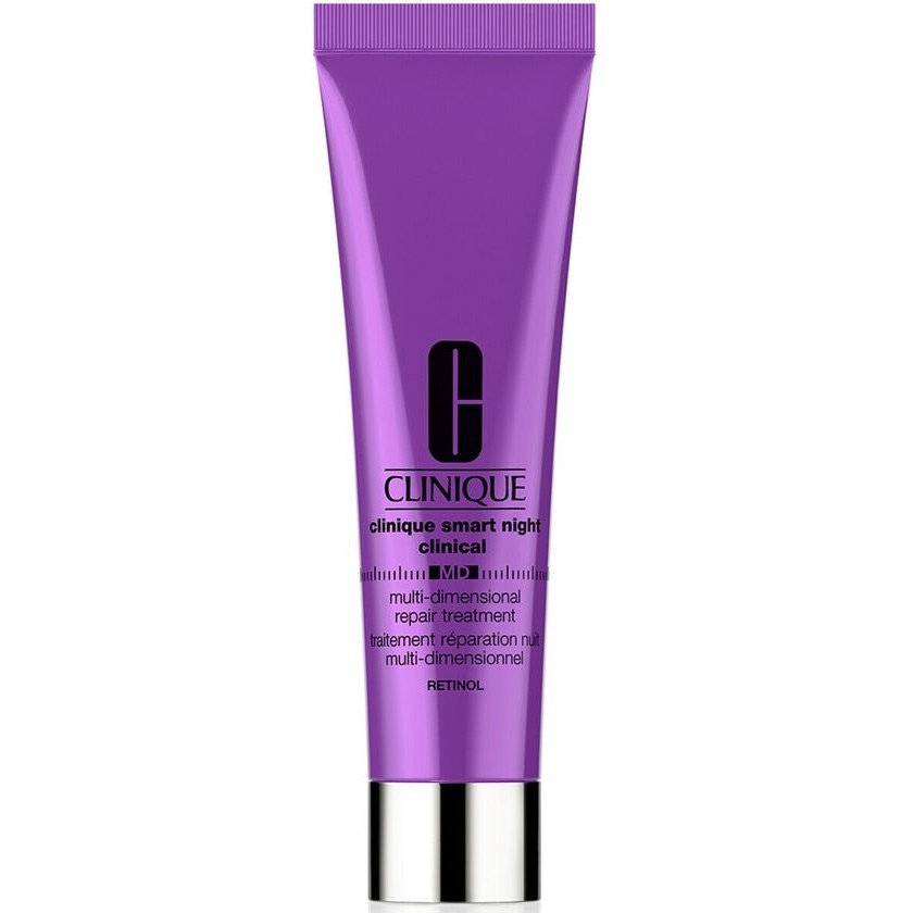 Clinique Smart Night Clinical Multi Dimensional Repair Treatment is a retinol night care. With this treatment you help initiate the anti-aging process. Hydrates the skin. Accelerates cell renewal. Reduces wrinkles and fine lines. skin radiates The poriA