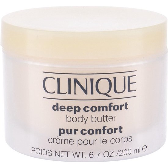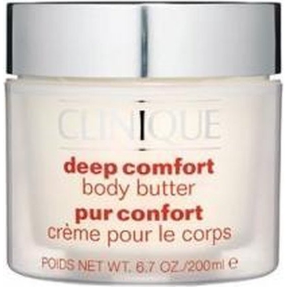 Clinique Body Deep Comfort Body Butter This luxuriously soft body butter has been developed to put an end to dry skin. This crA me with vitamin E and anti-irritant ingredients is absorbed directly into the skin of the elbows kneesA