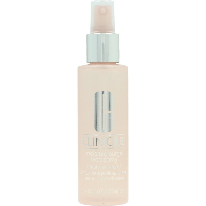 Clinique Moisture Surge Face Spray Thirsty Skin Relief This refreshing facial spray provides the skin with the necessary moisture. The facial spray is full of moisturizers and active aloe vera and is completely fat-free. The spray replenishes the moisture. restores moisture balance and softens and soothes the skin. The spray intended for all skin types is 100 perfume-free and tested for allergies. Use Hold the spray at a distance of 25 to 30 cm from the face. Close the eyes and spray a light mist. Use as a supplement to the daily routine. moisturizer under or over make-up where the skin needs hydration