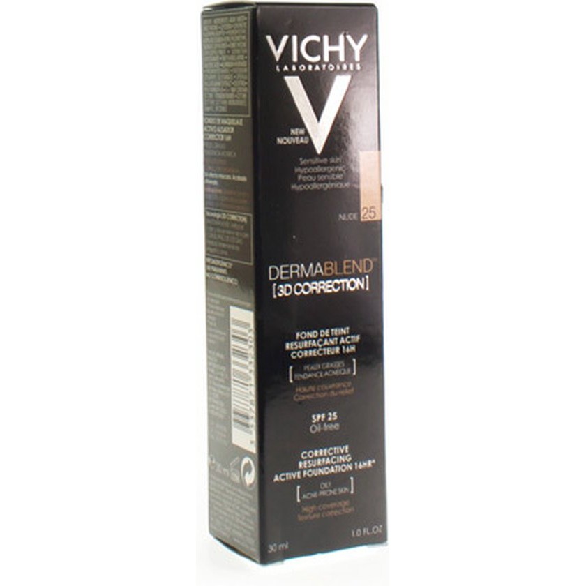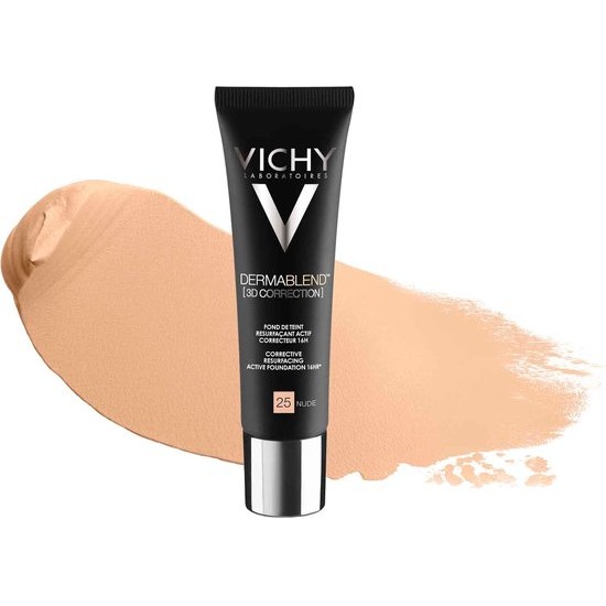 Vichy Dermablend 3D Correction Fond de Teint Fluide 35 Sand This corrective foundation has been specially developed for skin imperfections and lasts up to 16 hours. The foundation can be used for oily, sensitive and impure skin. fluide is oil-free and has an SPF25. In addition, the foundation does not provide a mask effect but a matte result