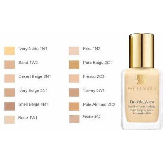 Estee Lauder Face Make up Double Wear Stay in Place Makeup SPF10 The Double Wear Stay In Place Foundation stays in place perfectly for 15 hours. The foundation continues to look fresh and natural in warm and humid conditions or, for example, during exercise The foundation does not change color does not stain and does not rub off on clothing The skin is protected with SPF 10 the foundation is oil and fragrance-free and tested by dermatologists Color Desert Beige