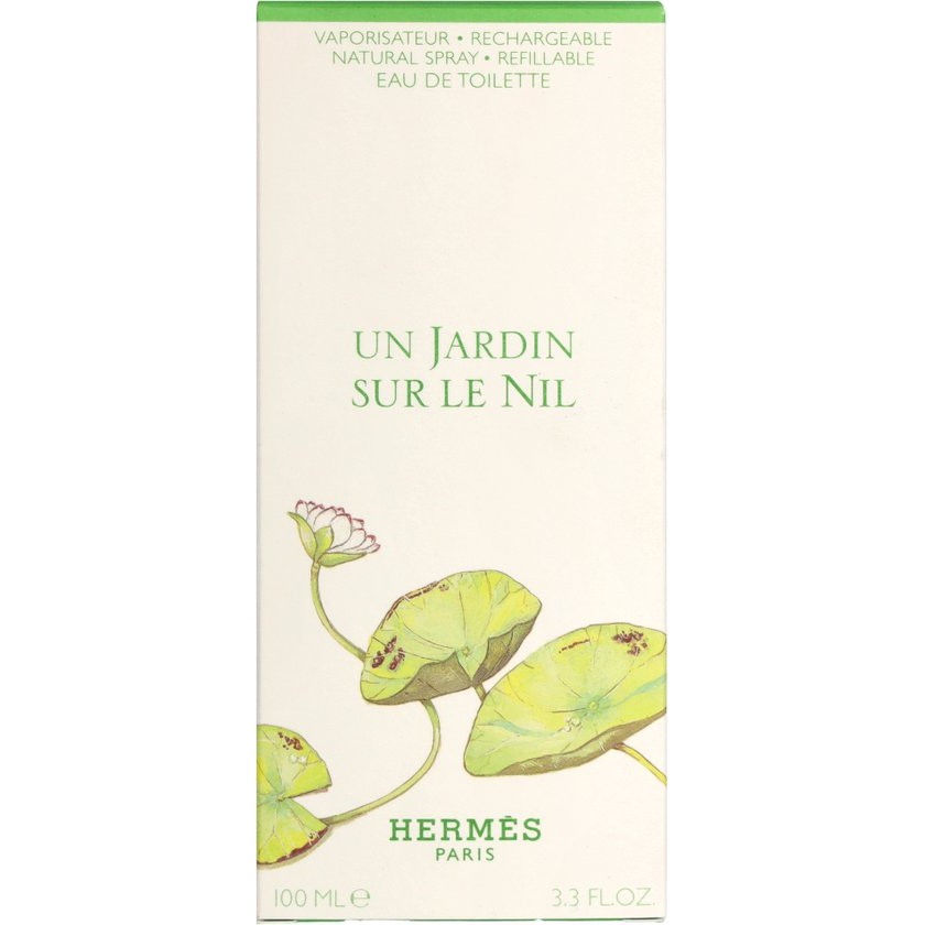 Hermès Un Jardin Sur le Nil eau de toilette spray werd in 2005 gelanceerd. Het is als het ware een wandeling door de verschillende eilanden vol bloemen aan de Nijl. Denk onder andere aan het gebruik van wortel, tomaat en mango aan de top. Het hart is meer voor lotus en hyacint, net als voor pioenroos