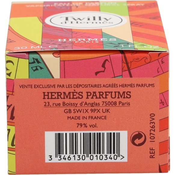 Hermès Twilly Eau de Parfum Spray is een betoverend bloemig fris, licht parfum van bijzondere intensiteit. Net als de Twilly’s, de iconische kleurrijke zijden linten van het label Hermès, danst het parfum alle zintuigen rond op een zomerse lichte en fascinerend kantige manier. Het kunst parfum doet het met drie geurnoten. Verse gember bepaalt de intense topnoot. Een zoete hint neemt de kruidigheid weg. De hartnoot bekoort met de sensuele geur van delicate witte tuberoos in de ochtenddauw. De basisnoot voegt vrouwelijke elegantie en diepte toe aan het parfum met het fijnste sandelhout