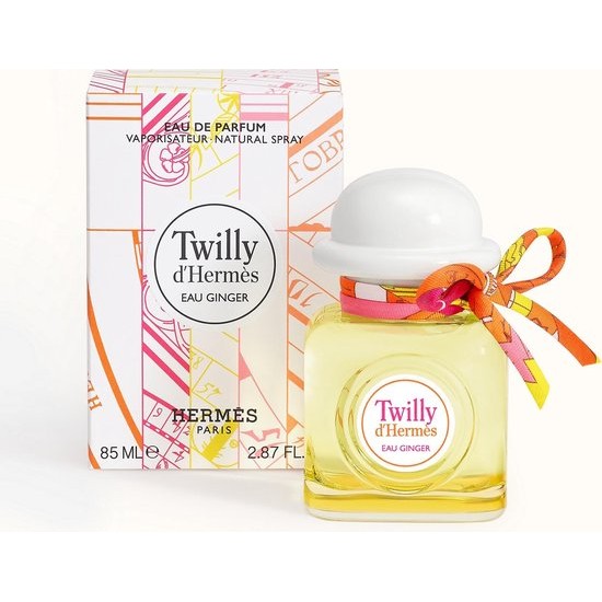 Hermès Twilly d’ Hermès Eau Ginger is een zelfverzekerde eau de parfum voor jonge dames. Christine Nagel creëert de geur in 2021 als een citrusachtig-kruidige flanker van de extreem populaire Twilly d’ Hermès geurlijn. Eau Ginger combineert het opvallende aroma van gekonfijte gember met vrouwelijke pioenroos. De sillage wordt gecompleteerd door noten van cederhout. Het vakkundige samenspel van lichtheid en indrukwekkende nuances behoudt een zekere jeugdige lichtheid ondanks de sensuele en warme noten. De flacon wordt afgerond met een kleurig lint aan de hals, dat doet denken aan de wereldberoemde en luxueuze zijden sjaals van Hermés.