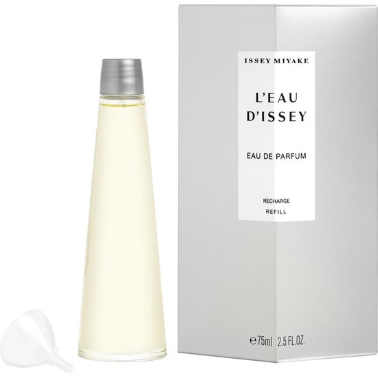 Issey Miyake – L´Eau D´Issey – Eau De Parfum – 75ML – Refill – Navulling. Issey Miyake L’Eau D’Issey is gecreëerd door een van ‘s werelds meest innovatieve designers en is een bloemige, heldere frisse geur met een licht houtig spoor. Top: Cyclamen, Water roos, Meloen, Fresia, Lotus, Roos. Midden: Anjer, Lelie, Water pioen, Lelietje van dalen. Basis: Exotische houtsoorten, Tuberoos, Smber, Sandelhout, Muskus, Osmanthus, Ceder.