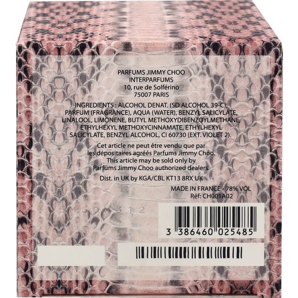 Parfumes Femme Jimmy Choo Imaginez a fragrance alliant feminine luxe et elegance le nouveau perfume Jimmy Choo is the synonym of the style strass and tapis rouge with a touch of provocation The premiere fragrance with the envelope of the femme the porte de sensualite et de seduction grace a un delicieux accord chypre fruite aux nuances chaudes riches et boisees Inspire by the femmes moderns are fort puissant all the way through the seduction alliant mystery et sensualite An objet de desir irresistible Jimmy Choo ofre ainsi glamor et sophistication dans un precise flacon with facettes inspired by the far de Murano