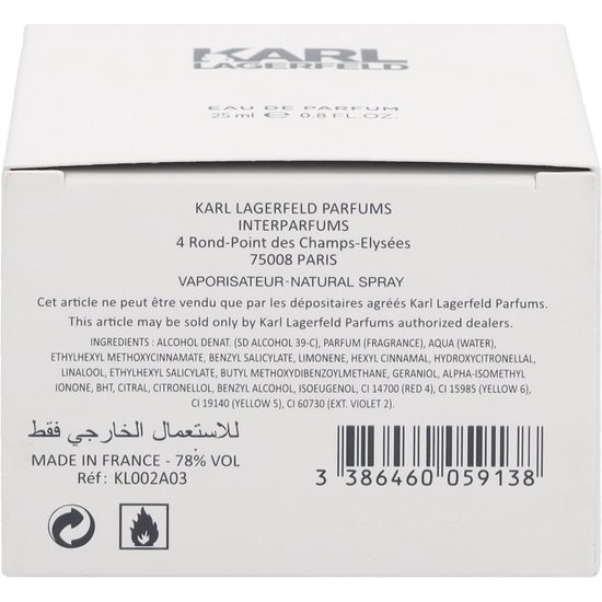 Classic yet sensuous the Karl Lagerfeld For Women Eau de Parfum is olfactory couture Inspired by the duality of Karl s approach to fashion elegant with a rebellious rock n roll edge the fragrance exudes irresistible magnetism The result is a vibrant signature composed as a fresh green floral with a bold selection of notes A spontaneous burst of lemon and lime open the fragrance enhanced by velvety peach skin In the heart a bouquet of rose creamy magnolia and exotic frangipani give the scent its signature flourish before a deep and dark dry down of musk and amber end For Her with a touch of seduction Top Notes Lemon Lime Velvety Peach Heart Notes Rose Magnolia Frangipani Base Notes Musks Dark Amber