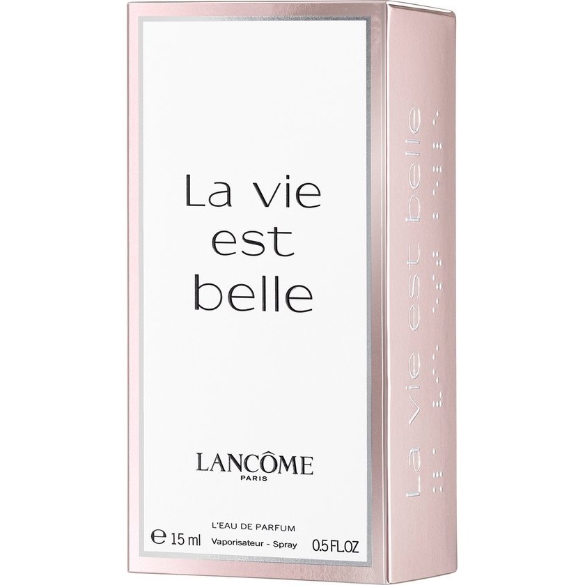 ‘La vie est belle’, een Franse uitdrukking die ‘het leven is mooi’ betekent, gaat over het kiezen van een eigen weg naar geluk en het inspireren van anderen. Vrolijke vrouwelijkheid komt tot uiting in deze energieke damesgeur. Pure extracten van iris, Arabische jasmijn en oranjebloesem vormen de hartnoten. Peer en zwarte bes als topnoot geven La Vie est Belle haar zoete geur terwijl patchouli, praline en vanille zorgen voor de intensere basisnoot.