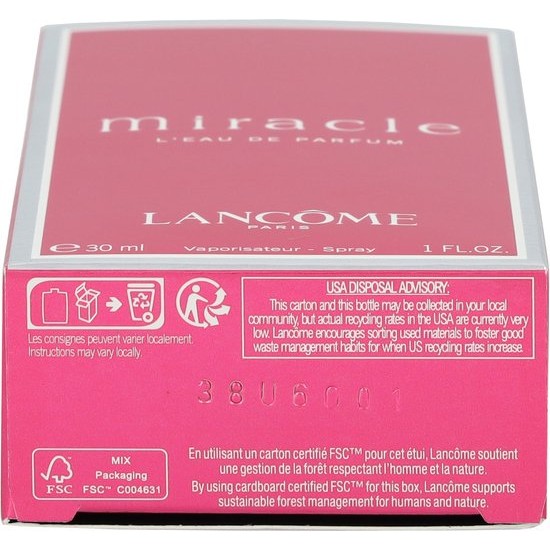 Lancome Parfum Miracle L Eau de Parfum This floral perfume was developed for women and was created in 2000 by Harry Fremont and Alberto Morillas The top notes of this perfume are Lychees and freesia The middle notes are magnolia ginger mandarin pepper and jasmine And the base notes are amber musk and jasmine