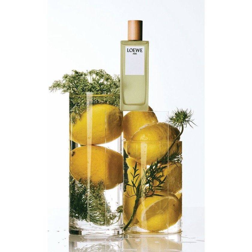 Loewe Aire is een bloemig, groenig parfum voor haar. Het is een delicate geur samengesteld uit citrusnoten en een bloemig karakter waar jasmijn altijd aanwezig is. Deze geur vermengt zich met een vleugje muskus en houtachtige noten en zorgt voor een intieme, individuele geursensatie. De geur wordt omhuld door een citroen geel glazen, blokvormig flacon.