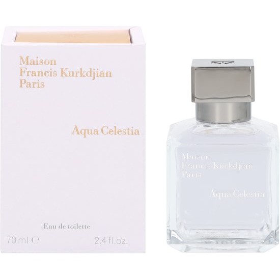 Inspired by the beauty of the ocean Aqua Celestia was introduced in 2017 by Maison Francis Kurkdjian Top notes of lime mint black currant and neroli create a delightful opening to the fragrance Rose and mimosa combine with green notes at the heart of the blend amplifying the refreshing nature of the perfume