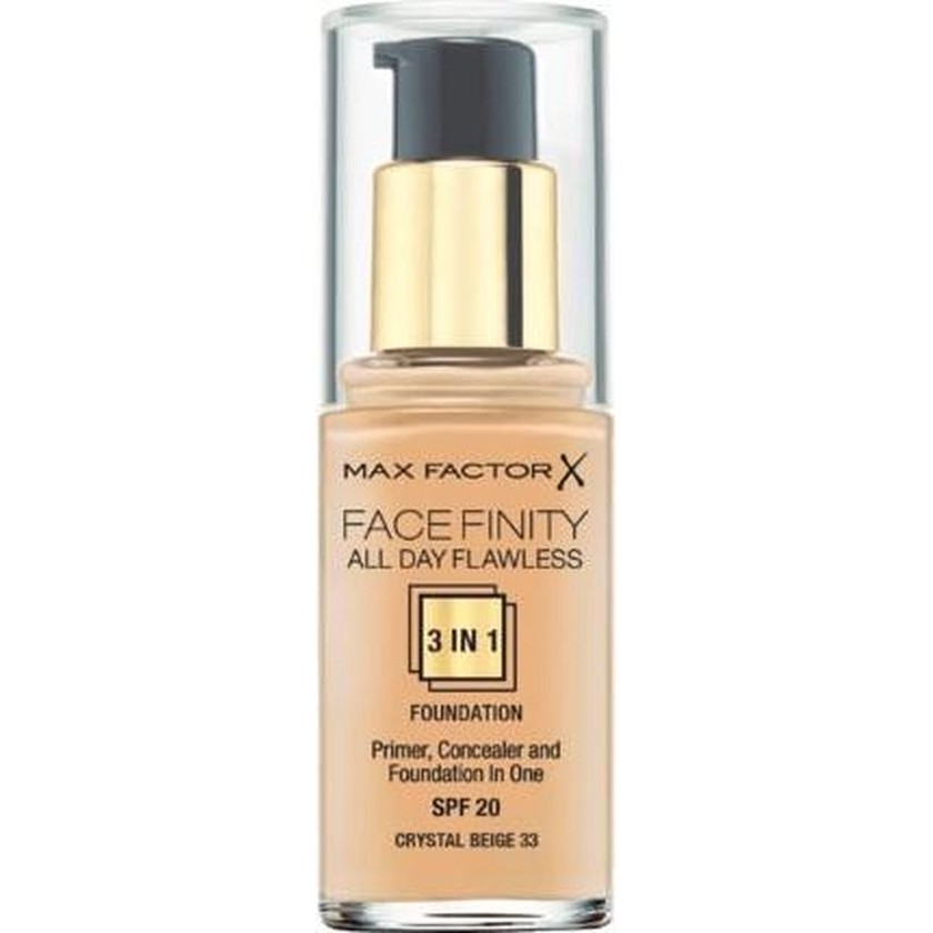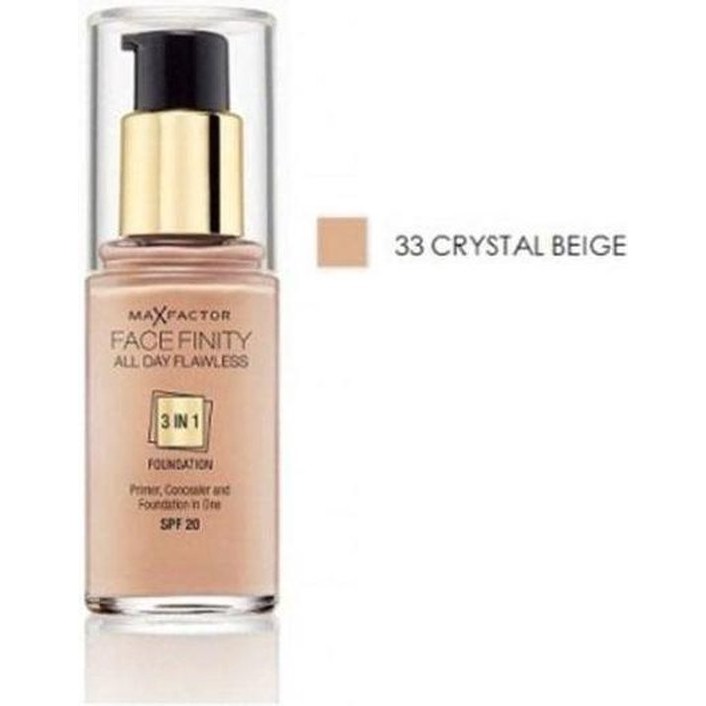 Max Factor Facefinity 3 In 1 Primer Concealer And Foundation Spf20 33 Crystal Beige 30ml
