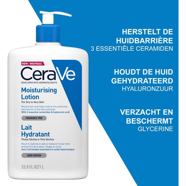 This oil-free milk with 3 essential ceramides Ceramides 1 3 and 6 II protects and restores the natural skin barrier and hydrates the skin all day long. The MVE technology ensures that the product continuously releases moisturizing ingredients to the skin for 24 hours The formula is non-comedogenic and hypoallergenic, making it gentle on the skin and does not clog the pores Contains no perfume and parabens The CeraVe moisturizing milk has been tested for allergies Suitable for dry and very dry skin of the face and body Can also be used on children from 3 years Available in different sizes