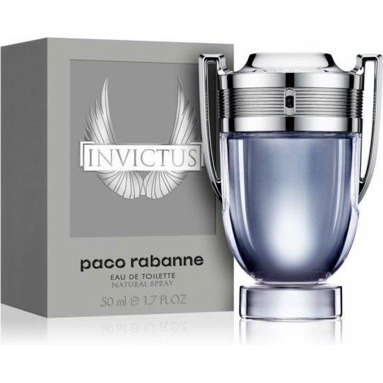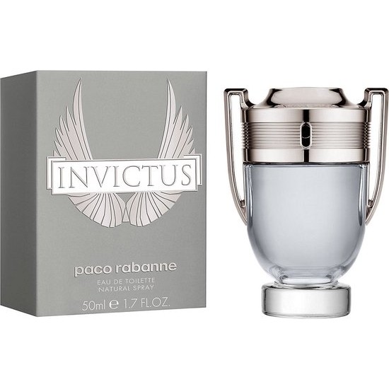 Invictus is a popular scent from the legendary Paco Rabanne brand Championing masculinity and strength Invictus is a powerful and enrapturing fragrance which dresses the body in a fresh and enduring scent Paco Rabanne Invictus is an exciting and modern fragrance A new level of freshness is achieved by the invigorating mix of marine accord grapefruit zest bay leaf and patchouli Unusual metallic notes are effortlessly blended together to add a level of invincible success to this deep and seductive fragrance Designed in the likeness of a trophy the Invictus packaging is godly and emphasizes power and masculinity