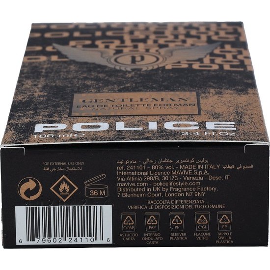Police Gentleman is a sophisticated scent designed for todays man about town A contemporary cologne that incorporates classic notes the blend opens with bergamot cardamom grapefruit lemon pepper and tangerine before descending into the heart notes of blonde tobacco cinnamon geranium quince and saffron The base notes of cedarwood musk oakmoss patchouli sandalwood tonka bean and vetiver create the rich finish