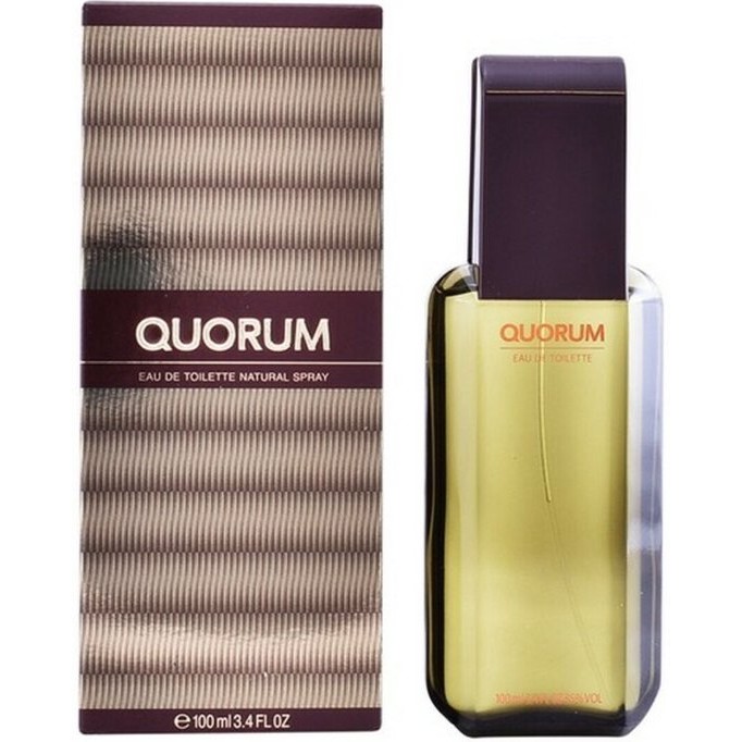 Antonio Puig Quorum Eau de Toilette 100ml Spray. Een klassieke warme maar ook intieme geur. Top: Bergamot, Artemisia, Komijn. Citrusvruchten Midden: Pathouli, Jasmijn, Den, Sandel, Cyclamen en Anjers Basis: Leder, Tabak, Mos, Amber en een vleugje Wierrook