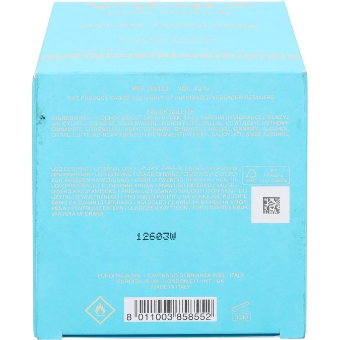 Levendig en speels, traditioneel en innovatief; Dylan Turquoise vult de familie van de Versace damesgeuren perfect aan. Een verleidelijke geur met onder andere Siciliaanse mandarijn, roze peper en witte muskus. Ervaar met Dylan Turquoise het zelfvertrouwen en de elegantie van de krachtige Versace vrouw! Versace Dylan Turquoise neemt u mee naar een ver eiland waar de blauwe lucht het heldere water ontmoet. De zeebries streelt de huid die de zintuigen wakker maakt en de ziel herstelt. Een geur die doet denken aan de warme, zonnige zomerdagen.