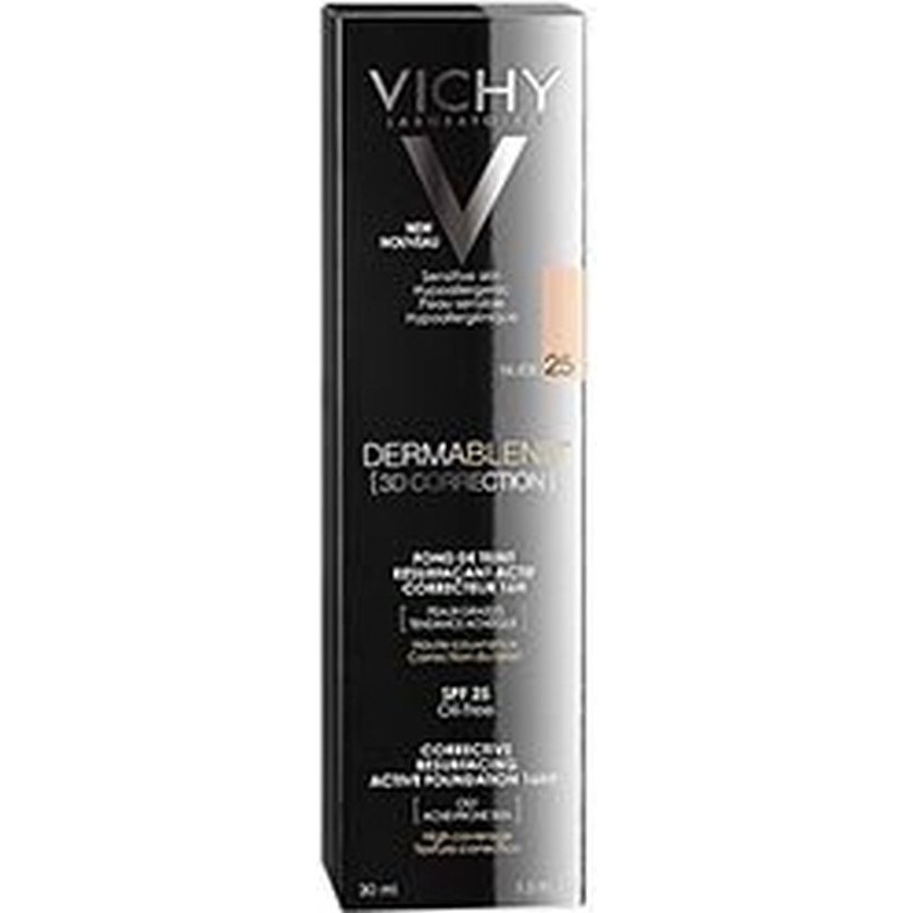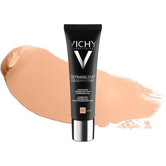 Vichy Dermablend 3D Correction Fond de Teint Fluide 35 Sand This corrective foundation has been specially developed for skin imperfections and lasts up to 16 hours. The foundation can be used for oily, sensitive and impure skin. The fluid is oil-free and has an SPF25. In addition, the foundation does not provide a mask effect but a matte result